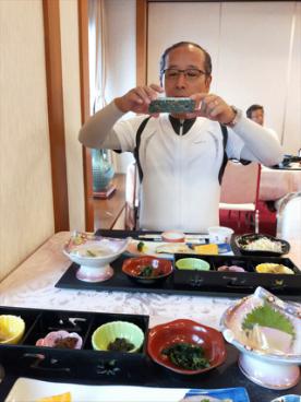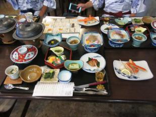 お酒を頂きました 旅館らしい朝食でした 8/10 今日は肌寒いのであるだけ着込む